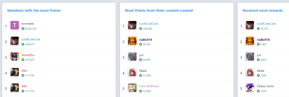 Pea Tear Gryphon Posted November 21 Author Share Posted November 21 4 minutes ago, LordCowCow said: "most points from their content created" I earned those bucko conveniently disregarding the "received most rewards" tab i am going to work my way up on the blackjack circuit and usurp you Quote Link to comment Share on other sites More sharing options...
